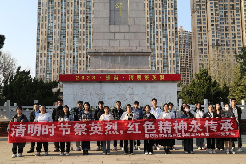 为缅怀革命先烈,弘扬英烈精神,赓续红色血脉,4月1日下午,av大平台 2022级组织师生赴潍坊市烈士陵园开展“清明时节祭英烈,红色精神永传承”党团共建活动。av大平台 本科生第一、二党支部和临床2022级团总支师生代表参加本次活动。