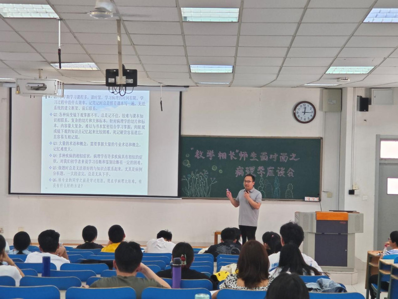座谈会上,三位老师分别从病理学专业背景、学习方法、学习技巧及考试安排等方面进行介绍和讲解,使同学们对《病理学》有了进一步的认识和把握。在提问环节中,同学们围绕学习过程中遇到的困惑踊跃发言,老师们对提出的问题耐心解答,对宝贵的建议积极采纳,对收集的意见及时反馈,努力为同学们营造良好的学习环境。同学们表示受益匪浅。