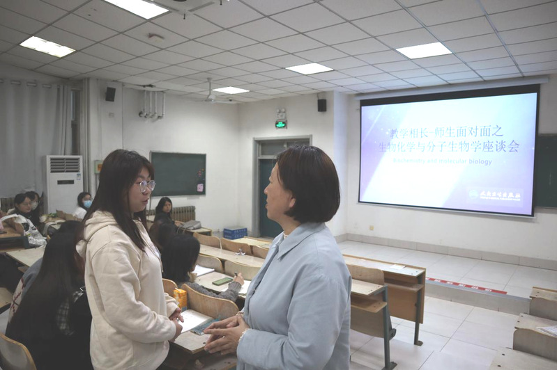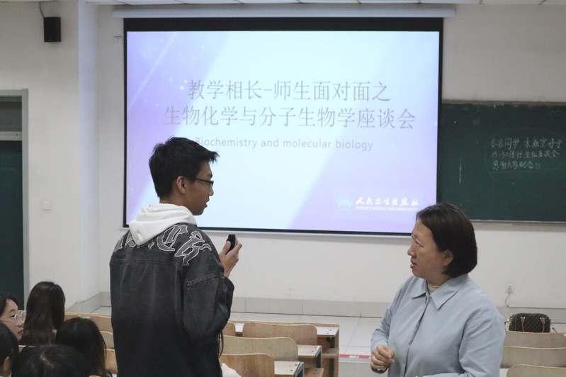 为进一步加深同学们对专业知识的融会贯通,11月3日,av大平台 2022级在教学楼A102教室召开“教学相长”师生面对面之《生物化学与分子生物学》座谈会。基础医学院免疫病原党支部书记刘志军、生化教研室主任杨晓云、副主任付新华以及av大平台 2022级学生代表参加。
