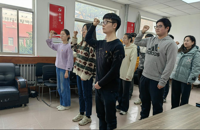 av大平台 本科生第七、第八党支部分别召开预备党员转正会议,同意预备党员按期转为中共正式党员,党支部书记要求转正党员再接再励、积极进取,争取在考研和就业中做好示范引领作用。刘刚为与会党员做“不忘初心、踔厉向前”主题党课,向毕业生党员提出殷切期望,希望大家牢记初心使命、践行入党誓言,在考研冲刺关键时刻增强共同体意识,以永不懈怠的精神状态和一往无前的奋斗姿态打赢考研攻坚战。党支部组织党员重温入党誓词,宣示共产党人的信念以及对党和人民的忠诚。