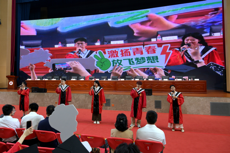 “把浩瀚的海洋装进我胸膛,即使再小的帆也能远航……”声声祝福,句句叮咛,化作辅导员们和学生们深情的歌声。全体教师与毕业生挥手告别,学院2025届本科毕业生学士学位授予仪式圆满结束。