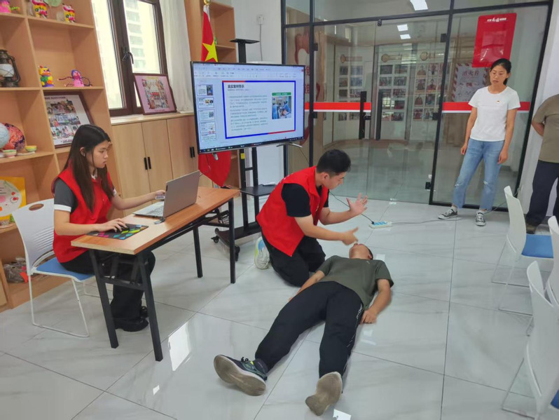 在颐年园养老院,团队针对老年人普遍存在的用药安全知识匮乏等问题,重点普及了《中华人民共和国药品管理法》等相关卫生法律法规,详细讲解了处方药与非处方药的区别、药品不良反应的识别、合理用药原则及药品规范储存等关键知识。此外,团队分别在花园社区和南湖社区设立宣传点,系统宣讲了传染病防治、食品安全、医疗纠纷处理途径等与居民日常生活密切相关的卫生法规,通过案例解析、互动问答等形式,使法律条文更贴近居民认知。同时,为应对夏季高温,团队配套开展了热射病预防识别、应急处置要点讲解以及心肺复苏术(CPR)的现场演示与指导。活动全程,团队向参与者分发了精心制作的卫生法治知识宣传材料。