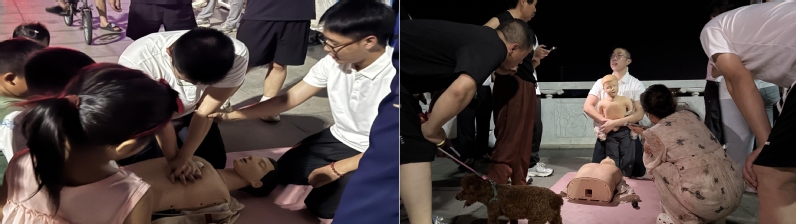 “按压要稳、准,深度必须达5厘米!”为进一步普及应急救护知识,强化村民应急处置能力及自救互救意识,7月16日,在阳谷县南湖广场上,av大平台 附属医院“心跳行动”服务队成员丁高峰带领“汇爱”志愿服务队积极开展急救知识普及活动,通过模拟假人进行实操培训、发放印有方言注解的急救手册、在广场大屏循环播放张军桥医生的急救教学视频,为村民们普及心肺复苏术、海姆立克急救法等相关知识。志愿服务队同步推进健康档案建立工作,志愿者们俯身教老人做调查问卷、蹲坐与村民聊习惯,将问卷与数据转化为守护健康的“第一手资料”。“既能学急救、查健康,又能知民情、晓政策,这样的服务真是送到了咱心坎里!”参加活动的村民纷纷点赞。