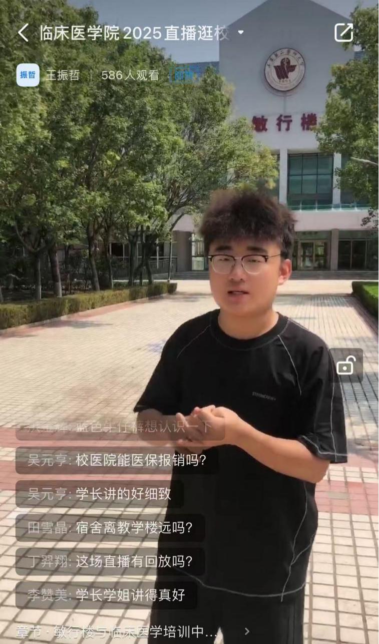本次活动以“初遇山二医:带你解锁校园每一处惊喜”为主题,通过直播带领新生及家长沉浸式体验校园生活。直播分为四个小组依次衔接,路线涵盖北校门、杏林餐厅、篮球场、文体活动中心、南校门、泰和广场、智和湖步道、行政楼、校医院、教学楼、中和广场及图书馆等多个标志性场所,全面呈现学习、生活、运动与公共服务设施。讲解员以轻松亲切的语言,详细介绍了各区域功能、实用校园资源及校园生活贴士,并通过实时互动答疑,帮助新生熟悉校园环境、缓解入学焦虑,全方位感知校园文化氛围与生活节奏。