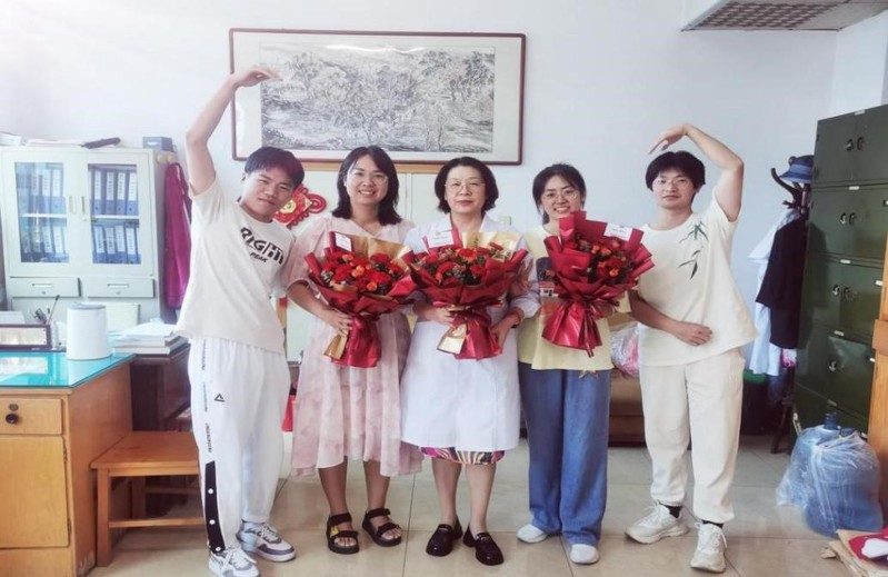av大平台 2021级见习学生向附属教学医院见习科室带教医生、专业课老师、科教科老师献花,用这种方式表达对医师们无私奉献和辛勤付出的深深感激。老师们深受感动,表示要以身作则,做好医学生的榜样和领路人,勉励同学们不断提高理论水平与实践能力,为祖国医疗卫生事业贡献青春力量。同学们表示,将永怀感恩之心,向优秀医务工作者看齐,做医学事业的传承人!