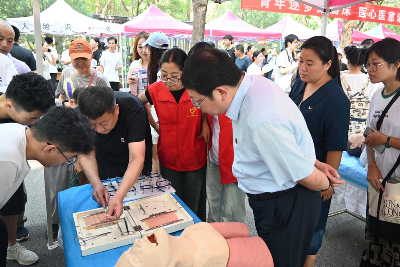 “道”行初启。作为第二批全国急救教育试点学校,学院别具匠心设计了带有专业特色的临床医学技能示范体验点,心肺复苏、气管插管、电除颤、打结缝合等科普内容吸引了众多新生和家长驻足观看,实践教师精湛的技艺不时赢得大家的阵阵掌声。