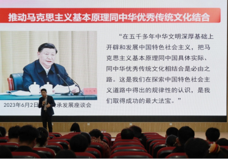 刘刚在培训班上强调,同学们要认真学习马克思主义理论,把个人的理想追求融入党和国家事业之中,做到坚定理想信念、提升专业素养、深耕实践沃土、发挥模范作用,时刻以高标准严格要求自己,将理论学习成果转变为践行真理的青春实践,为强国建设、民族复兴挺膺担当。马克思主义学院刘明老师以《推动马克思主义基本原理同中华优秀传统文化结合》为题作开班第一课,从“为什么要结合”“为什么能结合”“怎样结合”三个维度系统讲述了马克思主义基本原理同中华优秀传统文化相结合的内在逻辑,鼓励同学们立足新时代背景,深入思考如何推动两者有机结合。