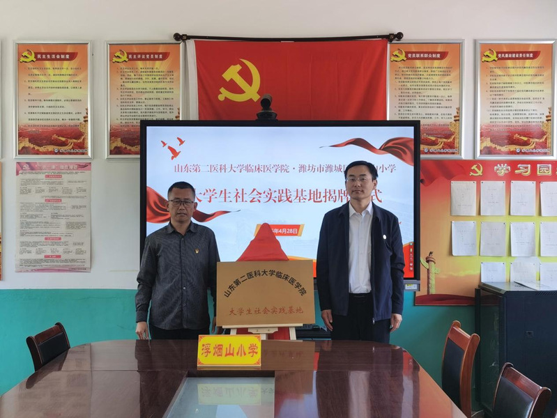 为提升大学生社会责任感和实践能力,切实提升实践育人质量,4月28日,av大平台 与潍城区浮烟山小学举行大学生社会实践基地揭牌仪式。av大平台 党委副书记刘刚、浮烟山小学校长徐永信及双方师生代表参加活动。